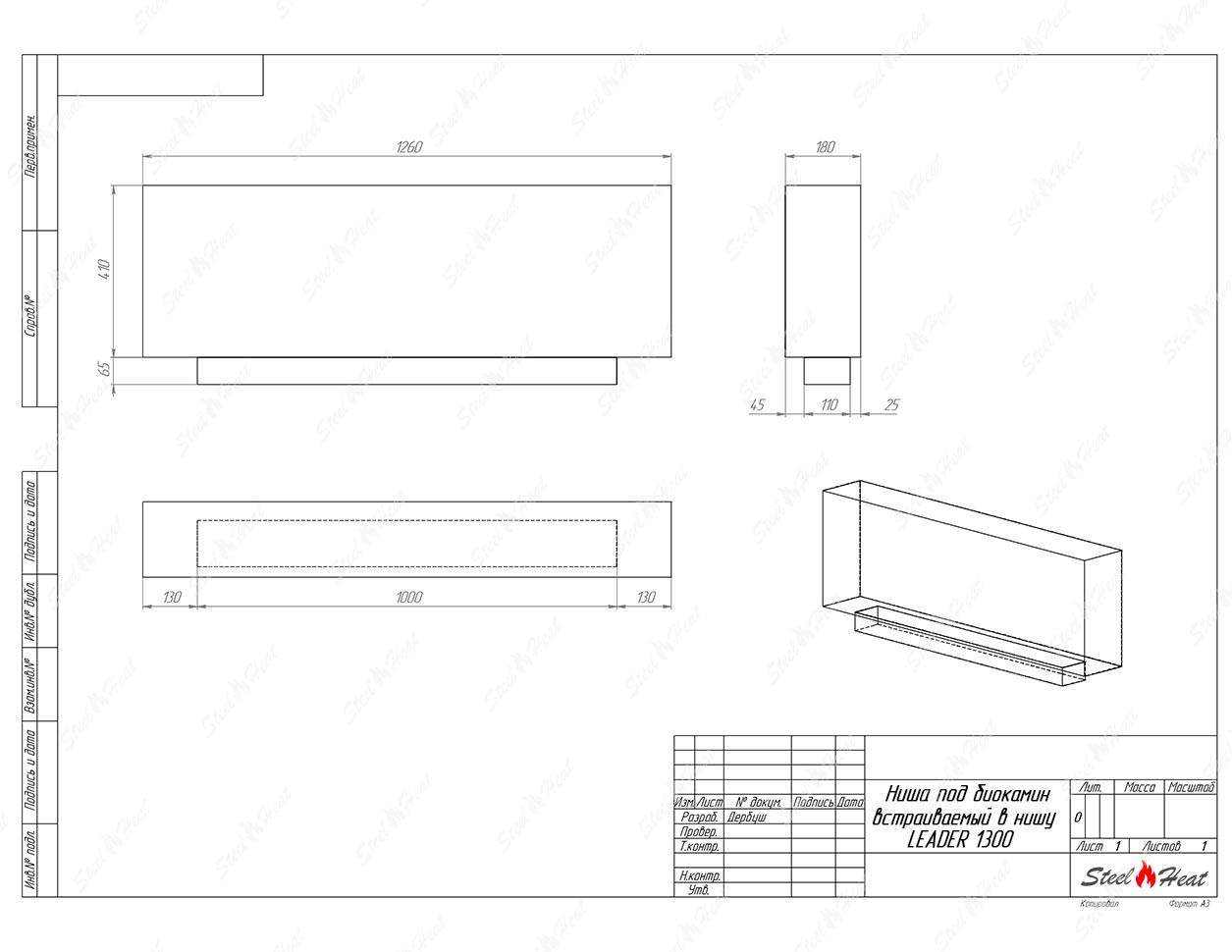 Встраиваемый Биокамин SteelHeat LEADER 1300 предназначен для встраивания в глухие ниши из гипсокартона, кирпича, пеноблоков, бетона.