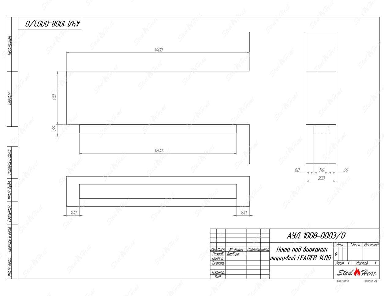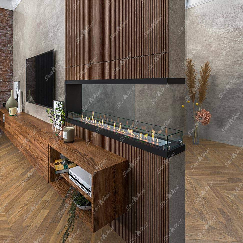 Встраиваемый Биокамин торцевой SteelHeat Leader 1400 предназначен для встраивания в глухие ниши из гипсокартона, кирпича, пеноблоков, бетона.
