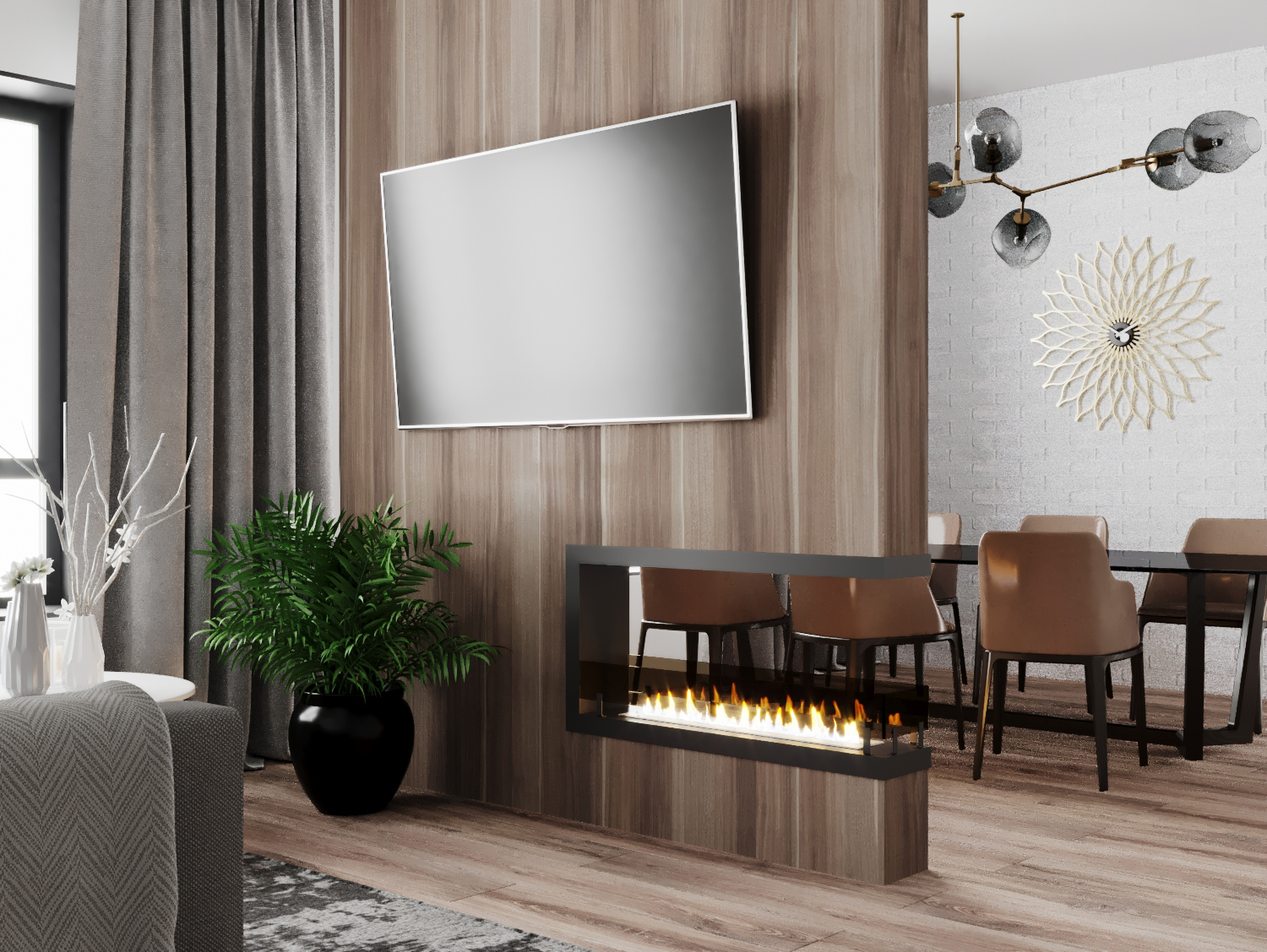 Встраиваемые варианты разделяются на такие как классические, устанавливаемые в подготовленное отверстие в стене или нише. Угловые, которые монтируются в угловую часть стены. Торцевые – открытые с трёх сторон. И сквозные, вид живого огня которых доступен в разных комнатах.