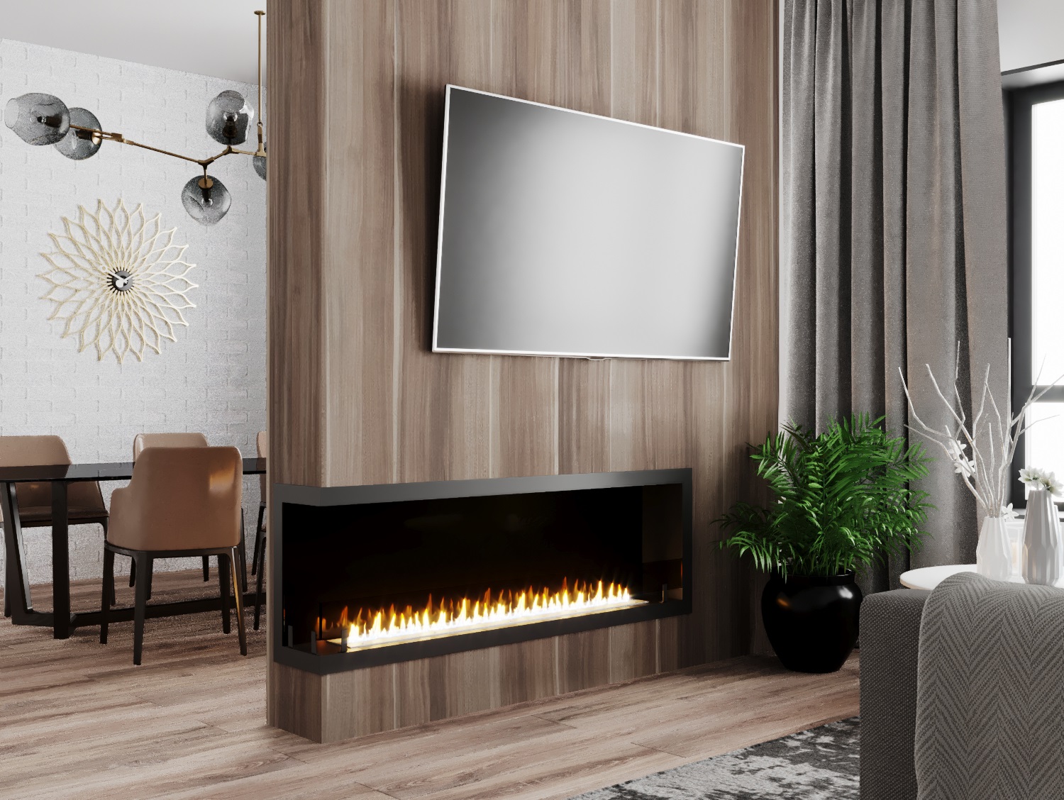 Биокамин встраиваемый угловой Plamenika Dango 1500х500 стемалит
