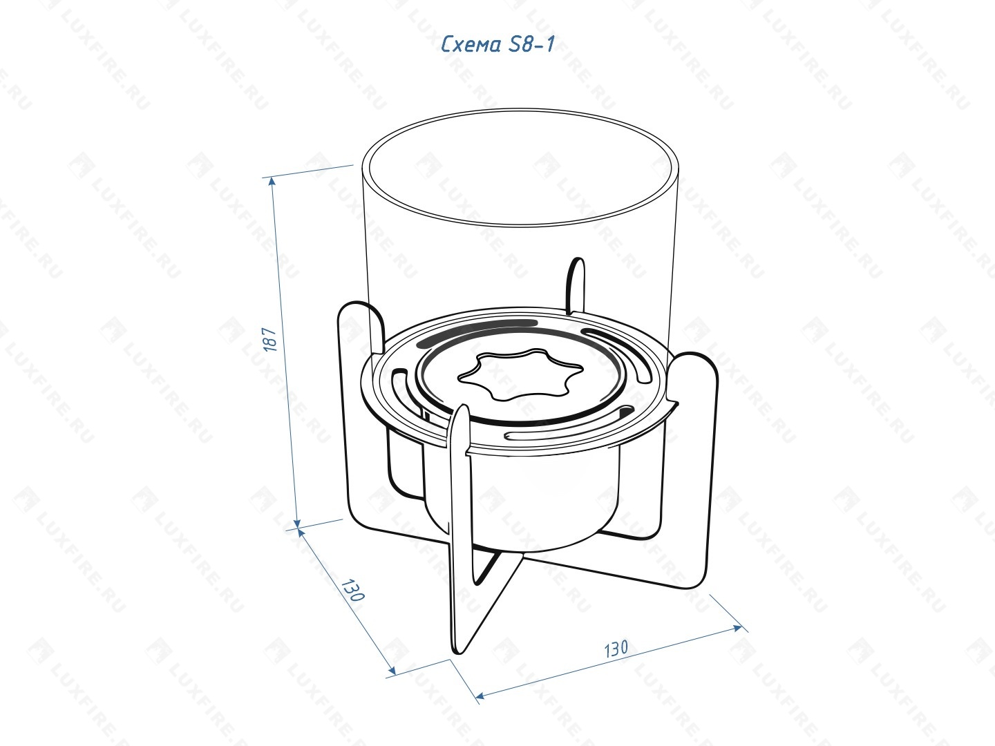 Очаг – это емкость куда заливается жидкое топливо. Емкость внутри заполняется керамическим материалом, который впитывает биотопливо, и в случае опрокидывания камина топливо не разливается. За счет этого конструкция стала полностью пожаробезопасной. Очаг встраивается в корпус из стали, который окрашивается специальной термостойкой краской, или же в заранее подготовленную нишу, изготовленную из негорючих материалов.
