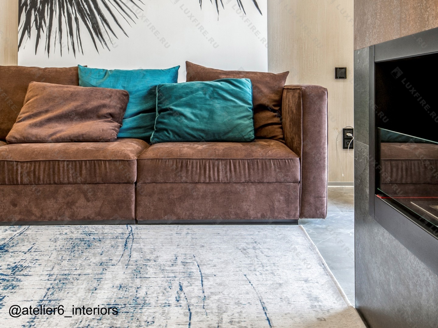 Представляет собой сборную металлическую конструкцию класса М, создающую полузакрытое безопасное пространство для огня с 2 топливными блоками Lux Fire 700М ограниченную закаленным стеклом в котором горит живой огонь с углом обзора 180 градусов .