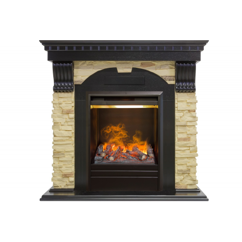 Каминокомплект «Dublin» оборудован современным паровым очагом «3D Olympic» от производителя Real Flame. Характерной особенностью такого очага является реализация имитации пламени, визуально практически неотличимого от настоящего. В оформлении портала использовано классическое сочетание имитации дерева и искусственного камня со сланцевой фактурой. Тут следует отметить, что использование камня в облицовке не делает его слишком массивным. С учетом изначально небольших габаритов такой камин точно не будет загромождать жилое пространство помещения.