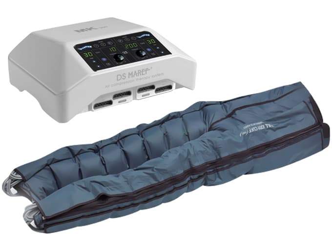 MK 300 - 6-ти камерный профессиональный лимфодренажный аппарат, обладает 2 блоками управления, встроенными в один компрессор, что даёт возможность проводить процедуры 2 клиентам одновременно, используя разные режимы компрессии.