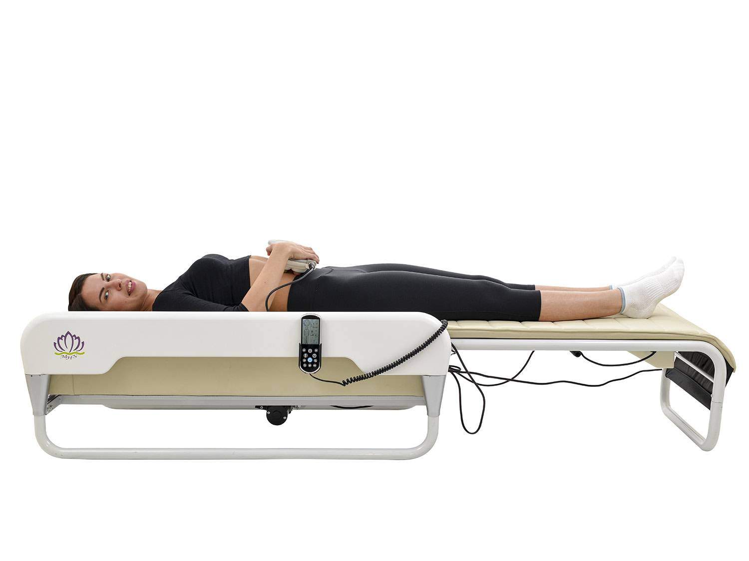 Массажная кровать LOTUS Health Care имеет уникальную раздвижную конструкцию, позволяющую изменять ее габаритные размеры. Благодаря этому кровать можно легко превратить в тумбу и наоборот. При этом все терапевтические функции в любой момент доступны пользователю, турмалиновой проекторы с низкочастотным ИК прогревом (длинноволновое излучение).