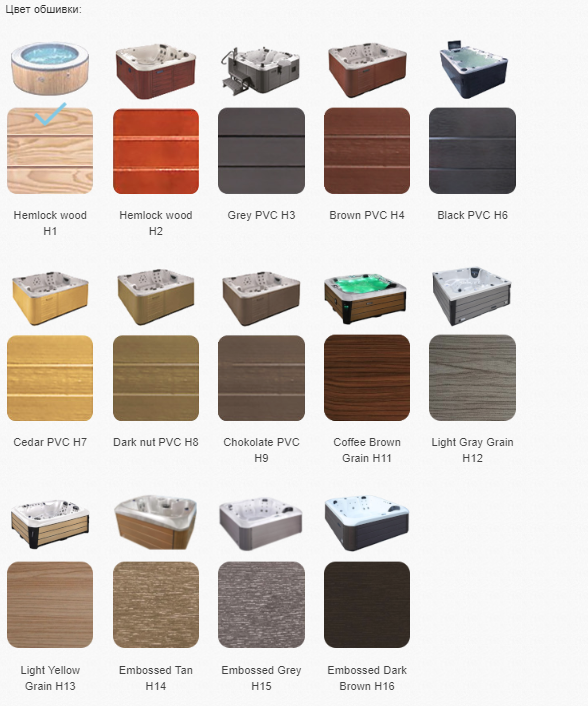 На ваш выбор представлено цветовое решение мини-бассейна из 18 оттенков.Обшивка Вашего бассейна из пластика или из дерева.