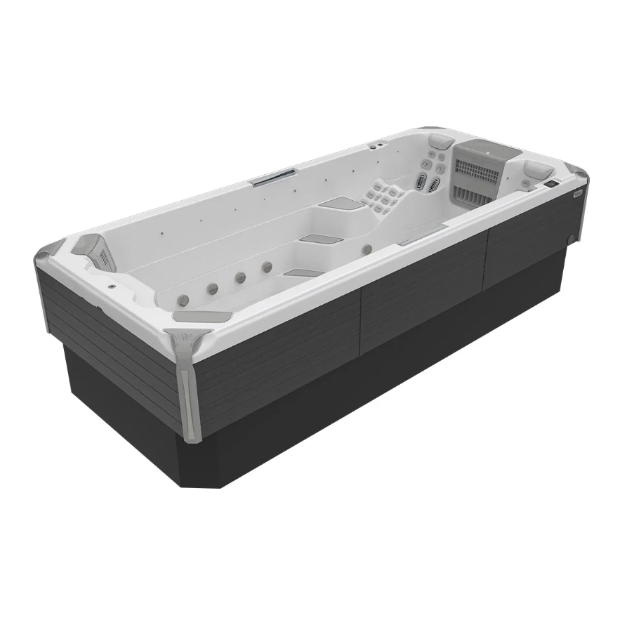 Превратите свое открытое пространство в рай для релаксации и фитнеса с помощью роскошного плавательного спа-бассейна. Его просторный дизайн, рассчитанный на два посадочных места, и впечатляющий объем воды в 8000 литров делают его идеальным местом для восстановления сил и физических упражнений.Передовые технологии, в том числе усовершенствованная система противотока W-Flow для оптимального плавания, гарантируют непревзойденные впечатления. Скандинавская изоляция повышает энергоэффективность, что делает ее идеальной для любого климата. Для дополнительного удобства вы можете дополнительно настроить его с помощью теплового насоса мощностью 3 кВт и встроенной системы Smart-In Step.