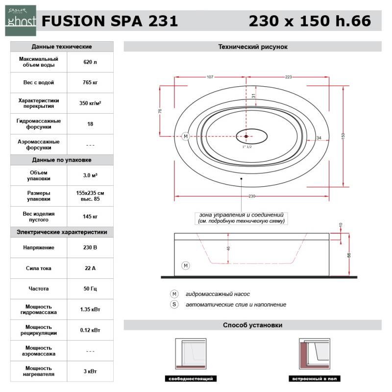 - 18 гидромассажных форсунок Ghost System