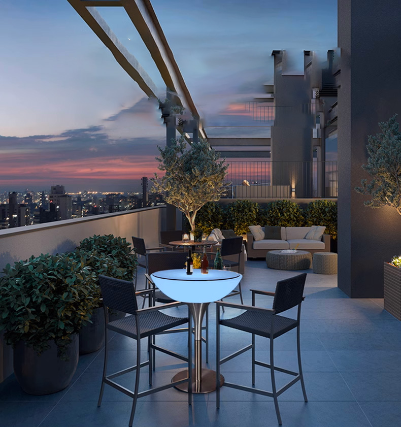 - Устойчивость к погодным условиям: благодаря степени защиты IP65 мебель идеально подходит для использования на улице, не теряя своих качеств под дождем или солнечными лучами.
