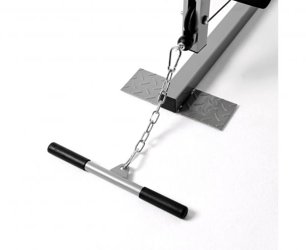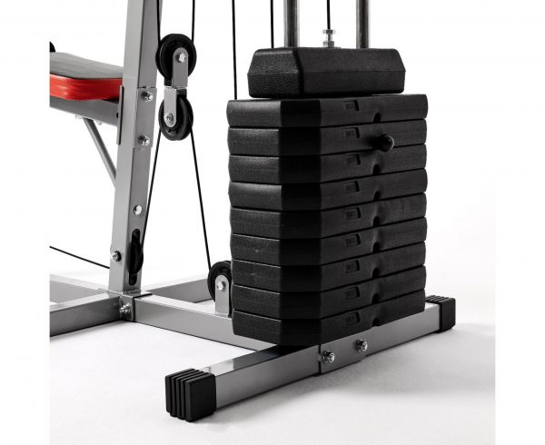 Ролики на подшипниках обеспечивают плавное движение. Стальной трос в защитной оплетке также гарантирует безопасность при выполнении упражнений. Весовой стек имеет общую массу 45 кг.